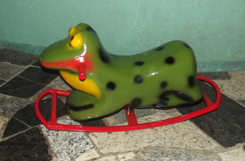 Material: Gangorra em aço, sendo o Sapinho em fibra de vidro. Usamos soldagem MIG
