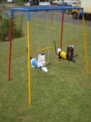 Material: Armação em aço e cavalos em fibra de vidro, correntes galvanizadas