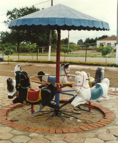 Material: Rolamento e estrutura em Aço, sendo a cobertura e os cavalos em fibra de vidro. Usamos soldagem MIG