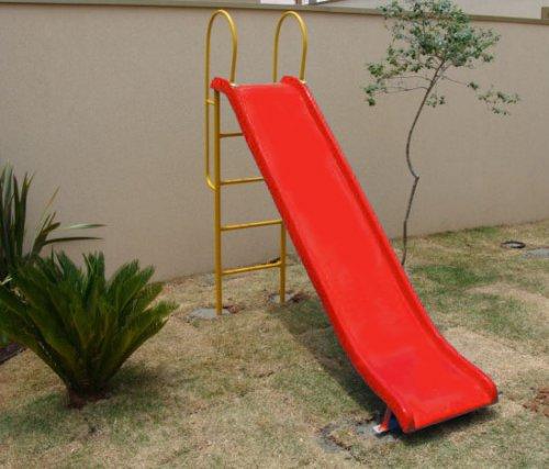 Material: Estrutura em aço, sendo a prancha do escorregador em Fibra de vidro. Utilizamos soldagem MIG