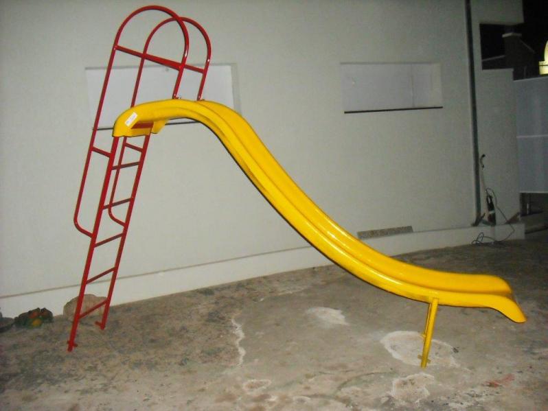Material: Estrutura em aço, sendo a prancha do escorregador em Fibra de vidro. Utilizamos soldagem MIG