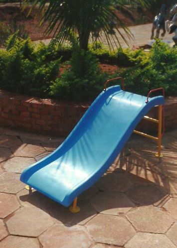 Material: Estrutura em aço, sendo a prancha do escorregador em Fibra de vidro. Utilizamos soldagem MIG